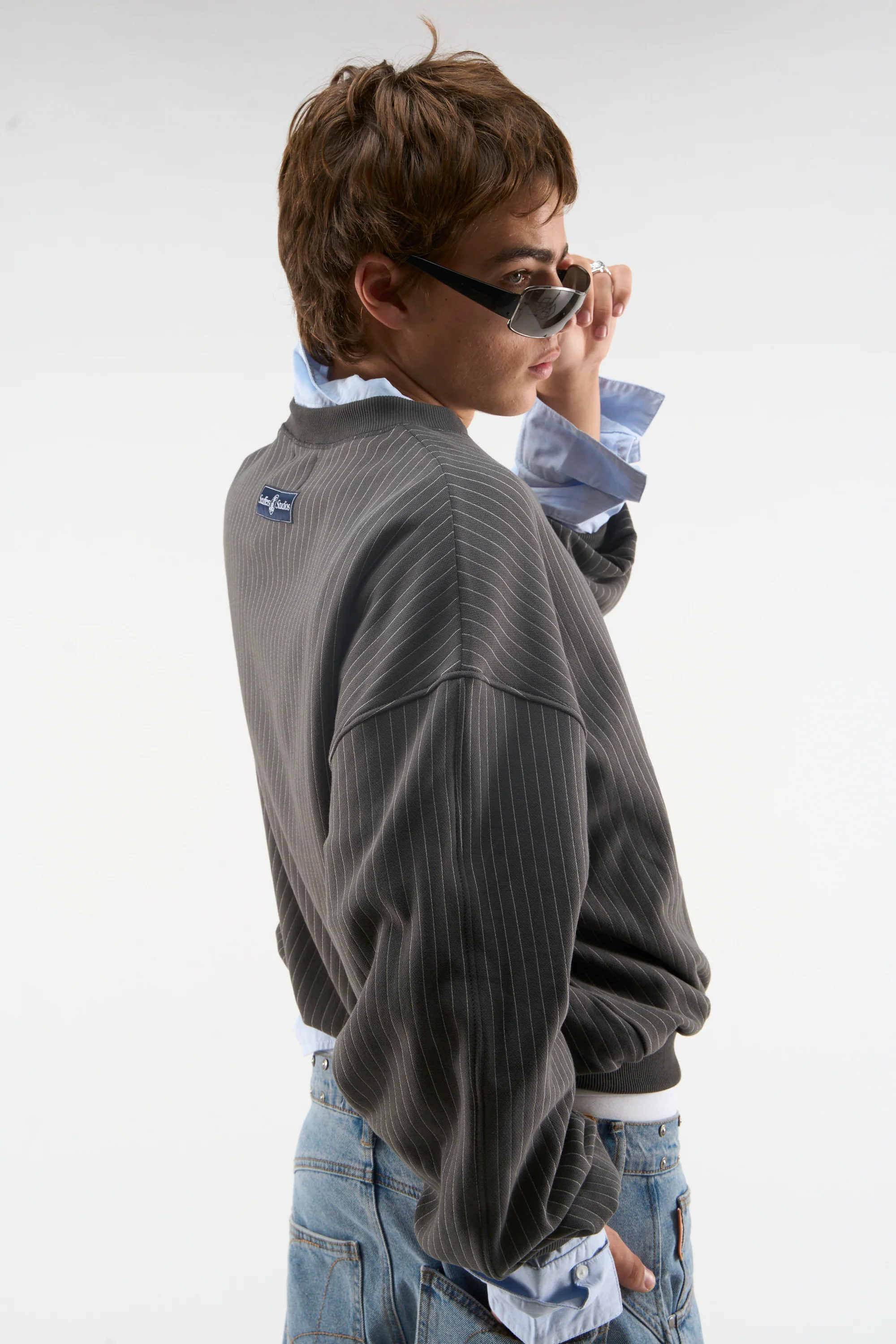 Pinstripe Dark Grey Crewneck